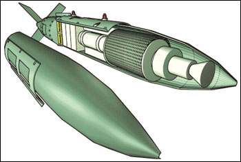 美軍飛機投擲電磁脈沖彈示意圖。電磁脈沖彈通常在空中爆炸以保證足夠的破壞效能