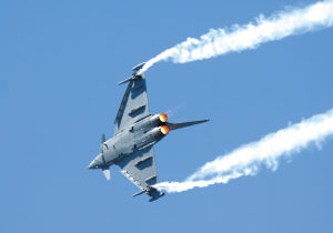 戰鷹呼嘯,人群涌動。展覽期間每天中午過后,在范堡羅航展參展的民用和軍用飛機便相繼飛上天空,展示著明天空中戰場的走勢。