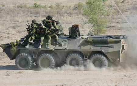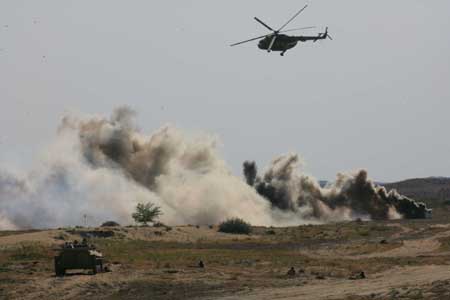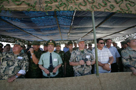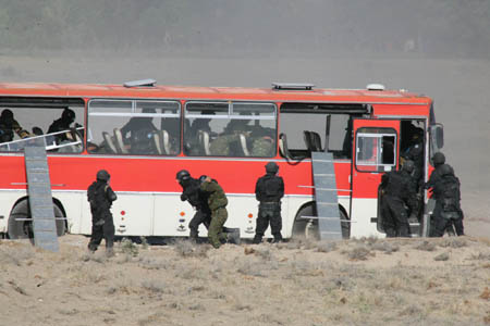 環球在線消息:當地時間8月24日11時30分,中國與哈薩克斯坦聯合反恐演習“天山―1號(2006)”第一階段在哈薩克斯坦阿拉木圖州開始舉行。這是上海合作組織框架內中哈執法安全部門首次舉行聯合反恐演習。演習的目的是為了落實2006年6月上海合作組織峰會就加強安全合作達成的重要共識,提高中哈兩國執法安全部門的合作水平,表明聯合反恐的決心,共同維護邊境地區安全和穩定。(來源:新華社
