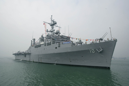 環球在線消息:11月15日,載有650余名官兵的美國海軍“朱諾”號兩棲船塢運輸艦抵達湛江港,開始為期5天的友好訪問,并將參加于19日在南海海域舉行的第二階段中美海上聯合搜救演習。艦隊由美國海軍太平洋艦隊司令拉夫黑德率領。(來源:新華社
