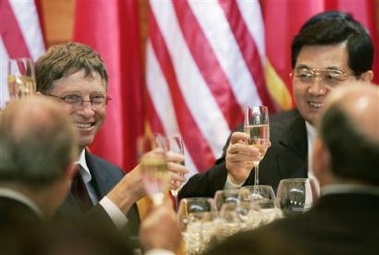 環(huán)球在線消息:4月18日,美國微軟公司董事會(huì)主席比爾·蓋茨在其位于西雅圖的住所宴請(qǐng)了正在對(duì)美國進(jìn)行國事訪問中國國家主席胡錦濤。(信蓮)