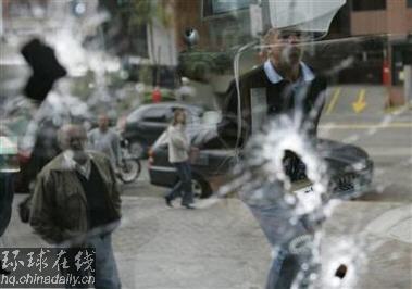 警局玻璃上的子彈孔