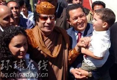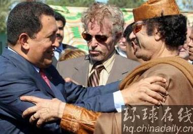 據(jù)美聯(lián)社報道,查韋斯5月17日到訪利比亞受到了熱烈歡迎,在與卡扎菲共進(jìn)晚餐之后,查韋斯對記者發(fā)表講話,呼吁世界共同抵制美國。查韋斯說:“我們反對美國這個帝國主義者,我們不接受它的霸權(quán)。全世界都應(yīng)該團(tuán)結(jié)起來,反對美國。”
