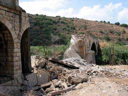 這是7月13日拍攝的被炸的達穆爾老橋。當天凌晨,以色列出動戰機轟炸了黎巴嫩首都貝魯特以南約20公里處的達穆爾新老兩座橋梁,致使貝魯特通往黎南部的交通中斷。[新華社照片]