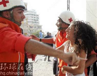 7月16日,以軍空襲導致黎巴嫩蘇爾一座房屋受損,醫務人員幫助一名受傷的婦女。[路透社照片]