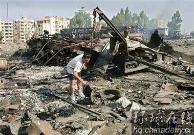 7月19日,在黎巴嫩哈代斯,一名黎巴嫩男子在遭到以軍戰(zhàn)機(jī)空襲的卡車車隊(duì)廢墟中搜尋著。以色列對黎巴嫩的空襲已經(jīng)造成大量平民傷亡。[美聯(lián)社照片]