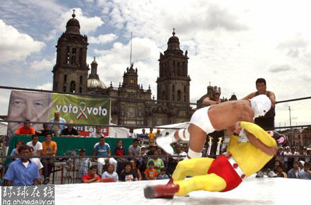 墨西哥街頭摔跤抗議選舉結果