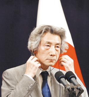 9月11日晚,日本首相小泉純一郎在赫爾辛基召開記者招待會,這是他作為首相的最后一次國際亮相。(圖片來源:環球時報)