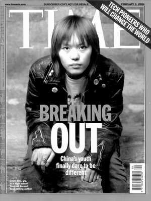 2004年2月2日,《時代》周刊亞洲版封面,一個年輕中國女孩著一襲黑衣進入全世界的視線。她叫春樹,被《時代》稱為“80后”的代表人物。