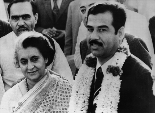 圖片說明:1974年薩達姆以副總統(tǒng)身份出訪印度。