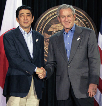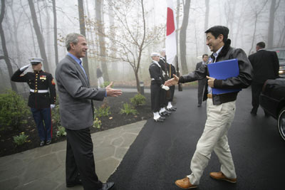 兩天的國事訪問盡管短暫,但是安倍卻似乎已然完成了他此行的最大使命——鞏固與美國之間的關系。除了在朝鮮和中東等政治問題上達成共識外,安倍與布什也儼然在這幾天里建立了新的友誼。