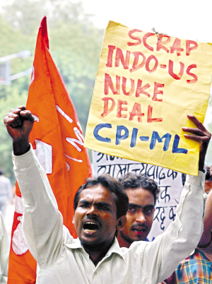 這一協議曾被看作是印美兩國加強戰略合作的象征。然而今年8月協議雙邊文本公布后,印度政壇掀起一陣波瀾。印度主要反對黨人民黨認為該協議出賣了印度國家利益,左翼政黨則認為該核協議干預了印度外交政策的獨立性,都表示強烈反對。本月初,支持執政聯盟的左翼政黨表示,如果政府堅持要執行該協議,他們將不再支持政府,而將提前舉行大選。