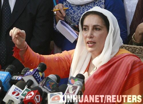 11月16日,在巴基斯坦東部城市拉合爾,巴前總理貝·布托在其住所舉行的記者招待會上講話。據(jù)報道,巴東部旁遮普省政府當(dāng)天解除了對貝·布托的軟禁,但警方仍將保持正常警力保護她的安全。12日晚至13日晨,旁遮普省警方包圍了貝·布托在拉合爾的臨時住所,并下達(dá)了7天內(nèi)禁止她離開住所的拘留令。新華社/路透