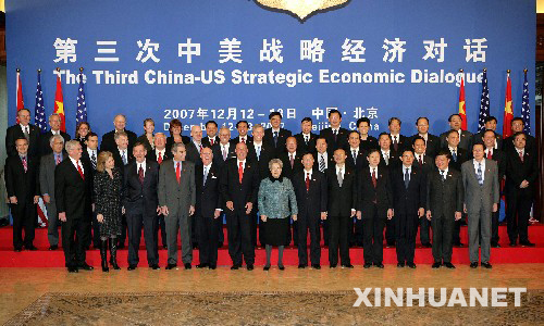 經過一天半的緊張會議,第三次中美戰略經濟對話于12月13日結束。中午12點,吳儀副總理和保爾森財長率雙方代表團會見了記者。吳儀依舊以一句“Lady first”當仁不讓地先行發言,而與11日初見美國代表團時的“火星四濺”不同,她第一句話就說,“第三次中美戰略經濟對話取得了圓滿成功”。