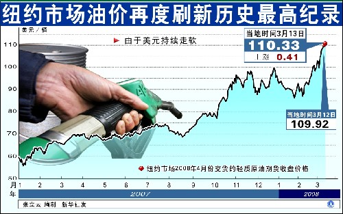 3月14日 圖表:紐約市場油價(jià)再度刷新歷史最高紀(jì)錄 新華社發(fā)