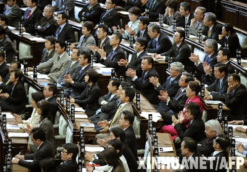 3月19日,在日本東京舉行的日本國會參議院全體會議上,在野黨議員在表決結果公布后鼓掌。當日,日本國會參議院再次否決了政府對日本央行――日本銀行行長的提名。新華社/法新