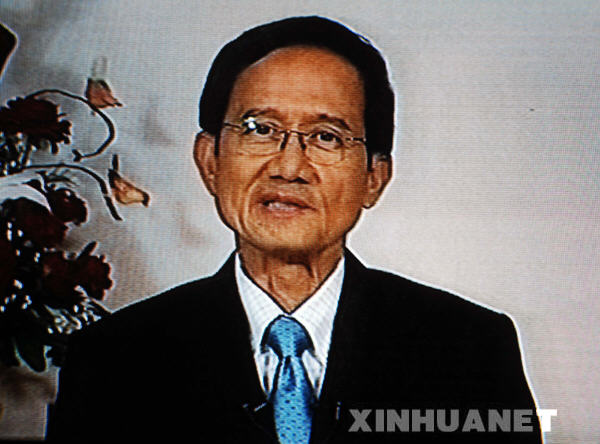 11月27日晚,泰國總理頌猜在泰國北部城市清邁發(fā)表全國電視講話,宣布在曼谷素萬那普國際機場和廊曼機場實施緊急狀態(tài)法。新華社記者凌朔攝