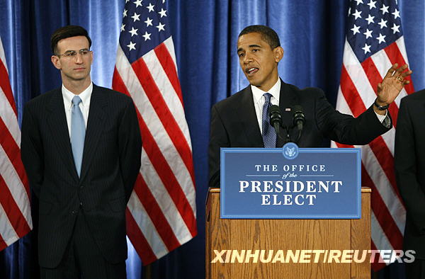 11月25日,美國當選總統奧巴馬在芝加哥召開的新聞發布會上正式提名彼得·歐爾薩格(左)出任白宮行政管理和預算局局長。歐爾薩格現年39歲,現任美國國會預算局局長。新華社/路透