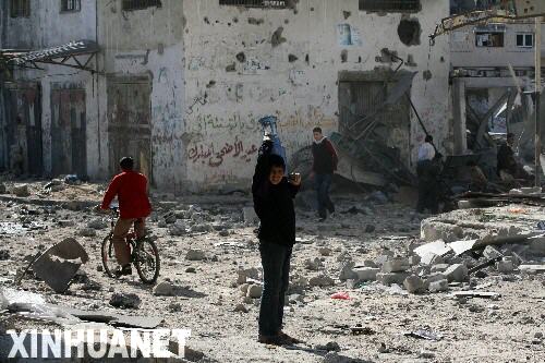 1月7日,一些巴勒斯坦居民經(jīng)過加沙地帶拉法口岸附近的一片廢墟。以色列地面部隊(duì)4日包圍加沙城,將居住在加沙地帶的平民越來越多地裹挾到戰(zhàn)火中。戰(zhàn)火摧毀了加沙城的排污和供電系統(tǒng),不少平民在斷水?dāng)嚯娗闆r下躲在家中,還有一些人為了求生,選擇逃離。新華社發(fā)(納賽爾攝)