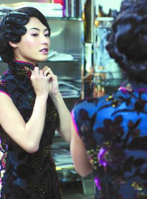 記者趕到車墩影視城時,正趕上張柏芝拍攝在“南京路”上,周璇遇馬車騷擾受驚的戲。發髻高挽、穿著一襲緞面藍碎花旗袍的張柏芝渾身散發著上世紀30年代的明星氣質。看著她旗袍肩部明顯高聳的墊肩和一雙高達10厘米的高跟鞋,一時間竟然讓記者感覺有點不太適應。問柏芝自己看著習慣嗎?她則爽朗地跟記者解釋開了:“上世紀30年代的服裝就是有墊肩的,雖然很多人不喜歡,但我覺得很好看啊。至于這高跟鞋嘛,我好像覺得自己不穿高跟鞋就不知道怎么走路了,我個子小嘛!”