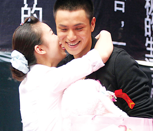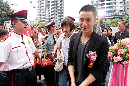 而臺下未能吻到的歌迷還嫉妒地大喊,“我也要親一個。”果真另一位女歌迷也沖上前去,再給陳坤一吻,還把一只小熊留給他作禮物。第二次遭遇強吻,陳坤仍然沒有黑面,繼續微笑以對臺下的眾多歌迷和媒體。