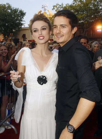 Knightley)身穿白色露背裙裝亮相,飄逸動人,十分搶鏡。另一主演奧蘭多·布魯姆(Orlando
