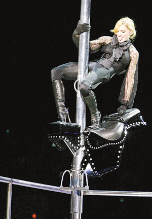 8月初,羅馬,美國歌手麥當娜在其個人巡演上勁歌熱舞。見過騎馬的,見過跳鋼管舞的,大家肯定沒見過在鋼管上“騎馬”起舞的。