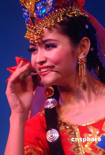 圖為開幕式上塔吉克族姑娘表演舞蹈《花兒為什么這樣紅》。張宇 攝(來源:中國新聞網)