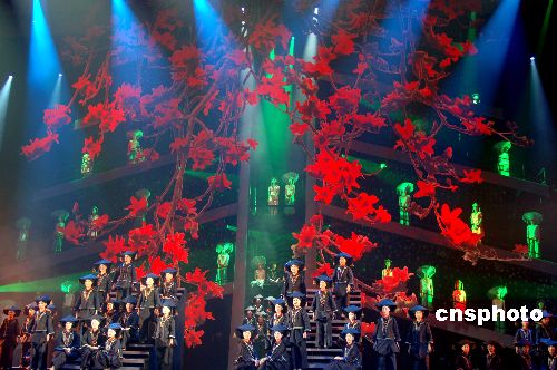圖為開幕式上壯族農民合唱團表演無伴奏合唱《山歌年年唱春光》。張宇 攝(來源:中國新聞網)