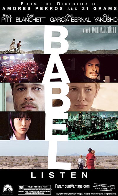 摩洛哥,荒涼的山區里,一對放羊的黑人小兄弟正興致勃勃地欣賞著父親手中的新玩意——一位日本朋友送給他們的步槍。如獲至寶的父子三人欣喜之余,決定一試身手——隨意向選出開了一槍。突然,伴隨著槍聲的消逝,遠處山下公路上的一輛旅游巴士嘎然停車。車上盡是來自世界各國的觀光客。不幸的是,來自美國的蘇珊(凱特·布蘭切特)被摩洛哥人的子彈擊中,為了挽救危在旦夕的生命,丈夫理查德(布拉德·皮特)四處求救,無奈人生地疏、語言不通,還好很快得到了美國大使館和當地政府援助,當地的警察也很快找到了躲避在山坡上的父子三人……