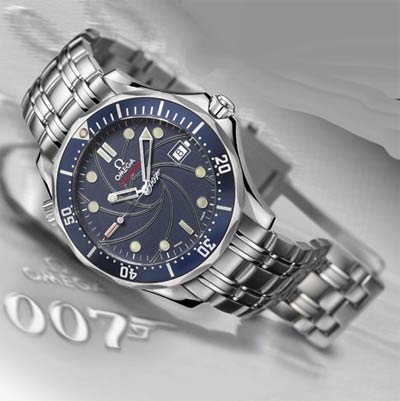 歐米茄海馬詹姆斯·邦德限量版系列帶有十足的007風格。表圈和表盤都采用經典的詹姆斯·邦德藍色為主調,表面上的螺旋形槍膛線更是詹姆斯·邦德電影開場時出現的圖案,詹姆斯·邦德迷一定過目不忘。這款獲發天文臺證書的手表,全鋼表身經過光面和鍛面相間處理,既尊貴又耐用。它同時也是一款不折不扣的專業潛水手表,備有螺旋式表冠、螺旋式底蓋、設有大型夜光圓點的單向旋轉表圈,供計算潛水時間之用,指針也涂上了超級夜光涂層。此外,手表10時位置的排氦氣閥門更是能夠下潛300米的重要設置。令人矚目的藍色表盤上備有鏤空時針和分針,秒針則有紅色尖端,另一端更設有007標志。小時刻度以圓點和小柱組成,清晰易讀。日歷窗設置在3時位置。弧拱形藍寶石水晶鏡面有防磨損和防反光功能。2500號機芯備有歐米茄獨有的同軸擒縱機芯和無卡度游絲擺輪,動力儲存達48小時,表底蓋是螺旋式防水設計,刻有007槍形浮雕和生產編號。海馬詹姆斯·邦德限量版系列的全鋼表帶備有安全扣,其上刻有007標志。