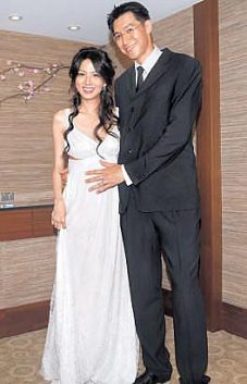錢韋杉(左)與丘宗志5月補請喜酒,當時她已懷孕四個月 |