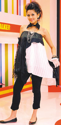 錢韋杉懷孕5個多月時,以辣媽形象最后一次進棚錄像。(民生報圖)