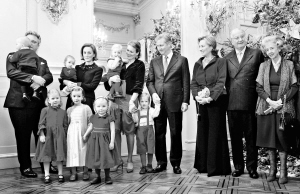 12月20日,比利時王室家族成員參加傳統(tǒng)的圣誕音樂會前在布魯塞爾王宮合影。第二排從左到右為:洛朗王子和王妃克萊爾,他們手上分別抱著雙胞胎兒子尼古拉斯和艾米利克;接著是儲妃瑪?shù)贍柕卤е鴥鹤影,斉柾踝樱鵂恐值膭t是加布王子,王儲菲利普也不忘牽著兒子的小手;再過來就是王后保拉、國王阿爾伯特二世、王后法比奧拉。第一排從左到右為:伊麗莎白公主、拉蒂蒂爾·瑪麗亞公主和路易斯公主。