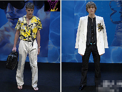 如果這種形式過于抽象,你無法全面的了解和欣賞Helbers的作品,那么Helbers也許要為路易威登設計新的男服標準了。這款系列服飾的重要概念很明顯的體現在T恤、圍巾和領帶上的芙蓉印花(夏威夷花冠的創新之處也散發著一種迷人的魅力)。Helbers講道,黑色的提花設計反映了傳統英國編織工藝與夏威夷風情的完美結合。