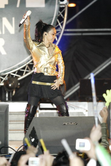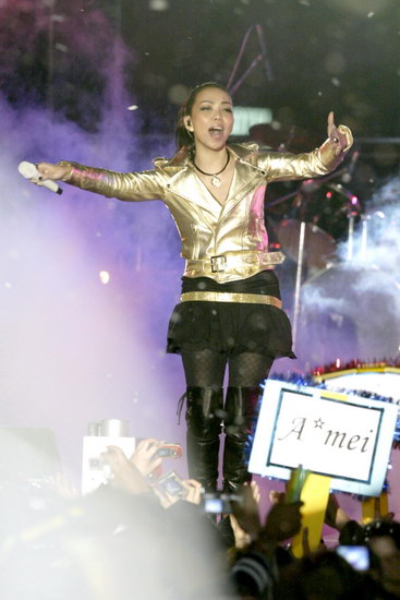 環球在線消息:天后張惠妹30日晚在淡水漁人碼頭的臺啤演唱會中壓軸熱唱,她使出渾身解數帶領歌迷high翻寒冷的冬天,現場觀眾連連尖叫,不停呼喊阿妹。阿妹還因為舞蹈動作太大差點走光,不過阿妹早就在短裙里面穿了安全褲。而現場也來了眾多歌手,有2 moro、卓文萱、曹格等人接棒歡唱。來源:東方網 作者:陳強