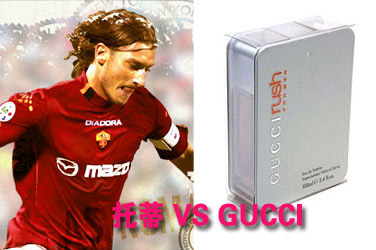 球星:誰還認為GUCCI只是女人的專用品,那么他已經落伍了;同樣,若誰還對意大利的馬爾蒂尼念念不忘,他也要被人取笑了。在這個推陳出新的年代,新的領袖托蒂代表著憑空出世的自信。
