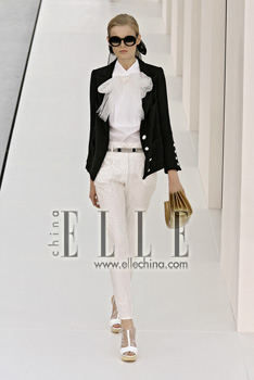 靈感來自男式“吸煙裝”的褲套裝,經過05年秋冬的“復活”,06年的醞釀,終于在07年的秀場“全面爆發”。設計師們紛紛從基本款吸煙裝出發,衍生出許多創意十足的版本,令它更“時裝化”了。中性是一種微妙的性感,比起直白的暴露,更引人遐思。女人們興致勃勃地扮演著心目中的帥男孩,而男人們又做何感想?也許會覺得這樣的女人更富有挑戰性吧。