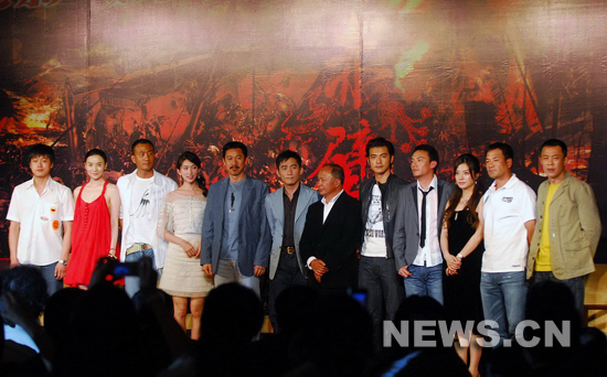 中國日報網(wǎng)環(huán)球在線消息:電影《赤壁》首次全球新聞發(fā)布會10日下午在北京舉行,導(dǎo)演吳宇森和梁朝偉、金城武、林志玲等片中主要演員一起亮相,與來自全球各地的300多家媒體記者見面。