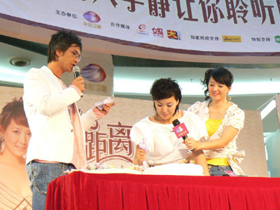 李靜還和現場觀眾玩游戲大派禮品,在做蛋糕的游戲環節中,李靜和視友會的幸運觀眾比賽做蛋糕,限時十分鐘,而且這十分鐘里要做快問快答!沒想到在節目中知性成熟的李靜居然玩得象三歲小孩一樣投入,爽朗活潑盡顯親和本色。