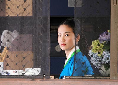 但如同宋慧喬所說,《黃真伊》是一部沒有脫戲也很有意思的影片。那么,讓我們忽略宋慧喬的“變身”,注重一下“黃真伊”的形象大改變吧。同樣的問題可以有不同的解法,這也是一種樂趣吧。《黃真伊》就是具有這種樂趣的影片。