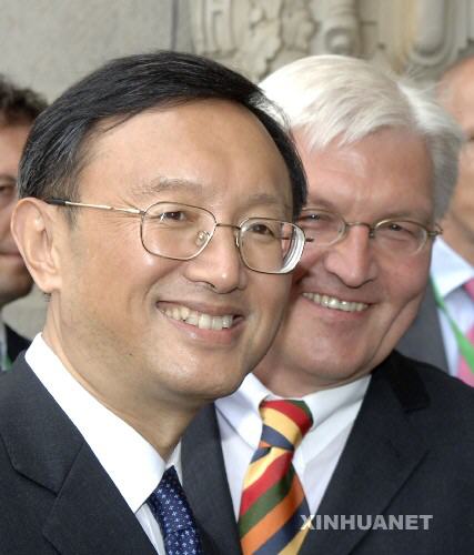 5月28日,在德國漢堡,中國外交部長楊潔篪(左)在出席中歐外長會晤前與德外長施泰因邁爾合影。