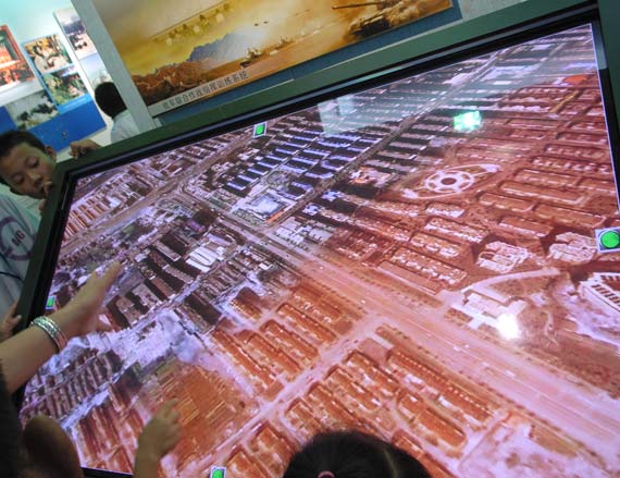 記者在現場看到,通過北斗衛星導航定位系統,可以在大屏幕上清晰地看到遠在千里之外的邊防巡邏車、水面艦艇的運行軌跡,指揮員還可以與定位目標進行雙向的文字、數據交流。在一張分辨率達到0.5米的大分辨率地圖上,觀眾用手指選定目標后,屏幕上立即顯示出該目標的精確地理坐標。