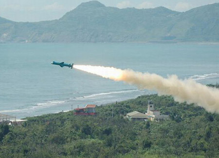 漢光軍演中臺軍雄風(fēng)II導(dǎo)彈飛向海上目標