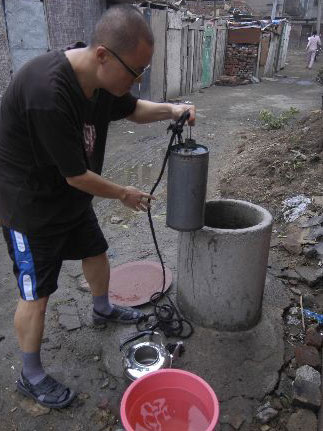2007年7月17日,長春市某小區(qū)居民到小區(qū)外的井里提水。作為長春市重要水源地之一的新立城水庫,近來突現(xiàn)藍藻。目前長春市已停止取用該水庫源水,并緊急調(diào)用其它水源。受此影響,城區(qū)西部有十萬人將生活在低水壓區(qū)域,約兩萬四千人則面臨無水局面。目前長春市政府已采取多種措施解決市民用水問題。中新社發(fā) 吳兆飛 攝