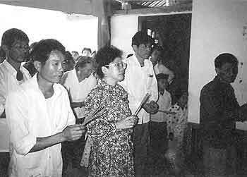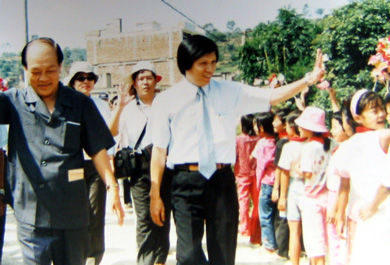 1998年8月呂秀蓮(中)在南靖龍?zhí)蹲陟艏雷妗?/font>