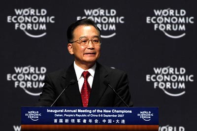 9月6日,世界經濟論壇首屆新領軍者年會舉行全體會議,中國國務院總理溫家寶發表特別致辭