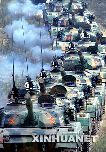 中國日報網環球在線消息:沒有戰斗發起的信號彈,“確山—2007”演習戰斗實施階段9月27日在坦克炮火的突襲中拉開序幕。