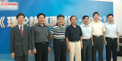 [編者按]2007年9月17日(星期一)下午15時,由中宣部理論局主辦,人民網承辦的《理論熱點面對面·2007》網上座談會第三場在強國論壇舉行,這次座談會將繼續圍繞《理論熱點面對面·2007》的特點、編寫情況以及對該書涉及的有關問題的認識與網友進行在線交流。出席座談的嘉賓有:中宣部理論局副局長張磊,中國社會科學院新聞所所長尹韻公,中國人民大學黨委宣傳部長鄭水泉,中組部黨建研究所韓久根,武漢大學社科部部長、教授沈壯海,河北大學黨委宣傳部部長、教授韓振峰,吉林大學法學院副教授劉雪斌。座談采用主題發言和在線交流相結合的方式,屆時將由人民網進行圖片、文字直播,新華網、央視國際網等重點新聞網站同時連線播報,新浪、搜狐等商業網站發消息。