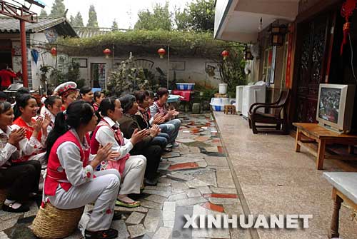 10月15日,在云南省昆明市西山區團結鎮龍潭村的一個農家小院里,20多名當地群眾聚在一起,收看中國共產黨第十七次全國代表大會開幕會電視直播。